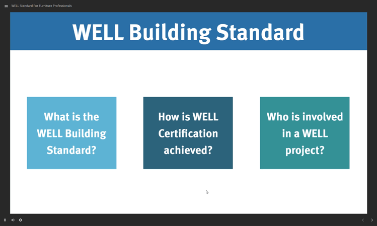 The training begins with an introduction to what the WELL Building Standard is, how a project can qualify for WELL certification, and which professional disciplines are typically involved in the certification process.